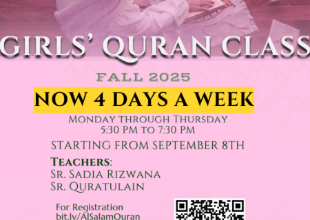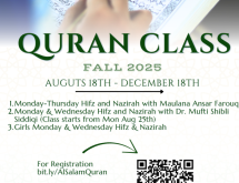 | Adult Sisters | Fall 2025 Quran Classes for Sisters | Evening classes Monday-Thursday, 5:30 PM |
